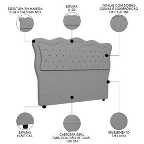Fabricada com estrutura resistente, tapeçada com espuma D-20 e revestida com tecido de alta qualidade, suave ao toque, essa cabeceira estofada será o ponto alto do seu quarto, pois além do design orgânico representado pelas linhas curvas, ainda se destaca pela sobreposição em capitonê que agrega charme e conforto extra, ao passo que transforma a decoração. Seja para recostar a cabeça durante a leitura ou simplesmente para apoiar as costas enquanto descansa, o fato é que a cabeceira Oregon é a peça perfeita para tudo isso e muito mais.