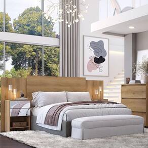 Cabeceira Casal com Mesas de Cabeceira Formosa Glass Capuccino Acetinado - THB