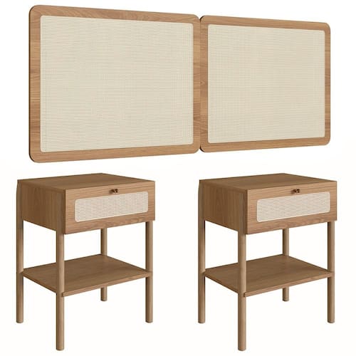 Fabricada em MDP com acabamento BP e detalhes em tela sintética, a Cabeceira Quenn oferece durabilidade e um toque acolhedor ao quarto. O design retrô sofisticado harmoniza perfeitamente com diversos estilos, enquanto os suportes metálicos garantem uma instalação firme e discreta. Já as Mesas de Cabeceira são ideais para manter o quarto organizado. Com uma gaveta espaçosa equipadas com corrediças metálicas e puxadores de poliestireno, oferece espaço extra para itens pessoais. A prateleira aberta é perfeita para exibir objetos decorativos ou guardar livros e revistas. Feita em MDP 15 mm e pés em madeira de eucalipto, suas extremidades contam com sapatas emborrachada para evitar riscos ao piso. A mesa combina resistência e sofisticação no Quarto de Casal.