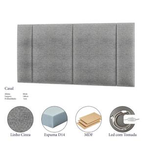 Material: MDF | Cor: Linho Cinza | Cabeceira Altura x Largura x Profundidade: 60x140x4 | Material da Cabeceira: MDF/Espuma | Cômodo Indicado: Quarto | Cabeceira Estofada: Sim | Qualidade da Espuma: D14 | Possui Led: Sim | Instruções/Cuidados: Com uma escova de cerdas macias, esfregue levemente o estofado para que o produto penetre bem. Depois, passe um pano úmido para retirar o excesso e, por fim, um pano seco para ajudar a secar. | Indicado para qual tamanho de Cama: Casal | Material para Filtro: MDF | Quantidade de Volumes: 1 | Peso Bruto: 6.4 | Altura do Produto (cm): 60 | Largura do Produto (cm): 140 | Comnto do Produto (cm): 4 | Nome do Simples no Fornecedor: Cabeceira Casal Led | Produto precisa de Montagem?: Sim | Garantia do Fabricante: 3 Meses Cor: Linho Cinza