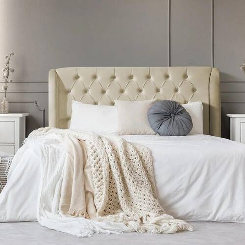 Cabeceira Casal Bege, Cabeceira Londres, Cabeceira Estofada Veludo Bege, Cabeceira para Cama Box Casal, Arte Estofados, Cabeceira 140x153, Cabeceira Moderna Bege