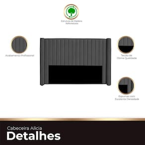 Transforme seu quarto em um refúgio de luxo com a nossa cabeceira estofada Alicia, projetada para cama box casal. Seu design contemporâneo e elegante acrescenta um toque romântico e sofisticado ao ambiente. A meticulosa fabricação das chapas de MDF, unidas com perfeição, eleva o padrão de elegância a um patamar. Esses detalhes são o toque final que você estava procurando para aprimorar a decoração. Descubra o conforto e o charme que apenas uma cabeceira como a Alicia pode oferecer e transforme seu quarto em um verdadeiro oásis de beleza e estilo!