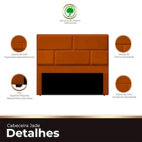 Cabeceira Casal Estofada Para Cama Box Jade Veludo Cor Terracota - Laranja