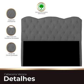 Cabeceira Casal Estofada Para Cama Box Verona Veludo Cinza Escuro
