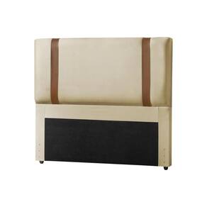 Cabeceira Zeus, Cabeceira Estofada Bege, Cabeceira de Veludo, Cabeceira Casal 140cm, Cabeceira com Cinto de Couro, Cabeceira Arte Estofados, Cabeceira Sofisticada, Cabeceira para Quarto Casal, Cabeceira Moderna Bege, Cabeceira com Design Atemporal