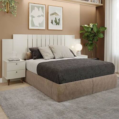 Deixe seu quarto mais moderno e aconchegante, com a Cabeceira Genova da Panan Moveis. Ela oferece estilo e praticidade para o comodo, pois possui duas mesa de cabeceira acoplados, onde voce pode acomodar objetos de decoracao, livros e demais objetos que necessitar. Confira mais detalhes:
