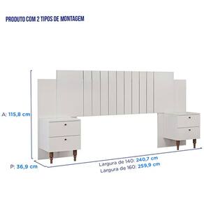 Largura: Para colchao de 138cm: 240,7 cm | Para colchao de 158cm: 259,9 cm
