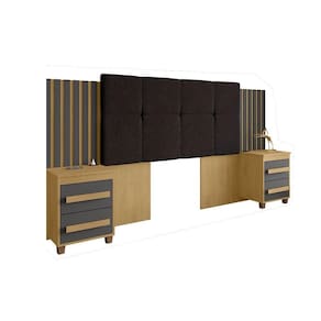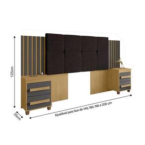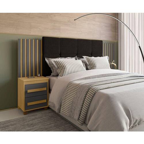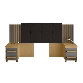 AS IMAGENS SÃO MERAMENTE ILUSTRATIVAS E PODEM SOFRER VARIAÇÕES DE COR E PEQUENOS DETALHES DE ACORDO COM O SEU MONITOR, ILUMINAÇÃO DO AMBIENTE E ATÉ MESMO A SUA PERCEPÇÃO VISUAL.Cabeceira Casal ExtensÃvel com 2 Mesas de Apoio Ripado SuiÃa Cinamomo/grafite