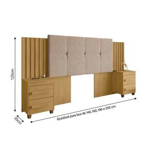 O grande diferencial está na versatilidade: é extensível, permitindo ajustar o tamanho conforme a largura da cama (casal ou queen) e o espaço disponível no quarto. Além disso, acompanha duas mesas de apoio integradas, oferecendo praticidade para acomodar luminárias, livros, despertadores ou objetos decorativos, mantendo tudo organizado e ao seu alcance.