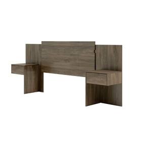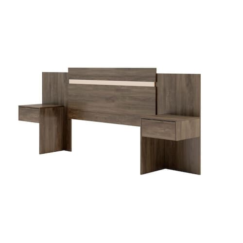 Cabeceira Casal Extensível e Mesa Lateral MadeiradoEscuro e OFF White Carraro