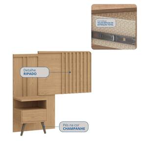Cabeceira Casal Extensivel Ripada com 2 Mesas de Cabeceira Flora Moveis Castro - Bege Médio