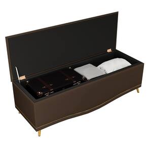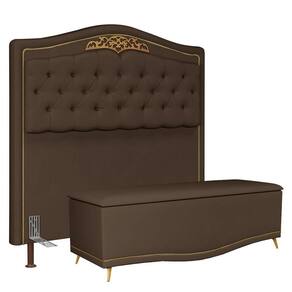 Cabeceira Casal King 195Cm Com Calçadeira Baú J02 Chocolate - Marrom
