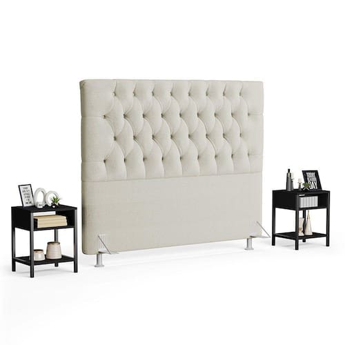 Conteúdo da Embalagem: 1 Cabeceira, 2 Mesas Laterais.