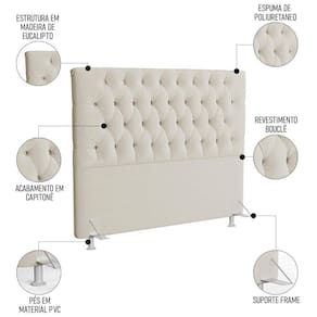 A Cabeceira Casal é uma ótima opção para quem busca conforto, beleza e qualidade. Ela é feita com madeira de Eucalipto, e possui um acabamento em espuma poliuretano e tecido bouclê de ótima qualidade e com detalhe em capitonê que vai deixar seu Quarto ainda mais elegante, acompanha dois pés em PVC, ideais para evitar o contato direto com o chão. A Cabeceira Painel tem um design moderno e sofisticado, com sistema de fixação prático e seguro, que permite que você a instale sem dificuldade fixando o frame na cabeceira e em seguida a base do box no frame. Ah! E ainda acompanha duas Mesas de Cabeceira estilo industrial, que além de ser prática para apoiar seu celular, abajur ou carteira ela conta com 1 nicho e 1 prateleira para objetos decorativos, livros e o que mais precisar. Com esse kit você vai ter um quarto mais aconchegante, organizado e charmoso.