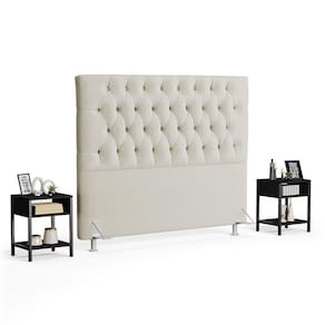Hora de renovar o seu quarto, deixando mais moderno e prático e a Cabeceira Casal King 195cm Cristal Bouclê Bege e 2 Mesas Laterais Plaza LC1 Preto, da Mpozenato é o Kit ideal para você!