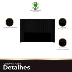 Cabeceira Casal King Size Estofada Para Cama Box Alicia Veludo Cor Preto