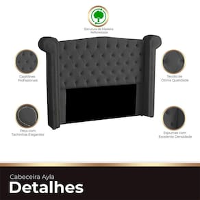 Nossa cabeceira estofada Ayla para cama box King Size é a chave para transformar seu quarto em um retiro de luxo. Seu design contemporâneo e elegante acrescenta um toque de romantismo e sofisticação ao ambiente. Os detalhes em tachinha de alumínio realçam a sensação de exclusividade, enquanto o aplique em MDF eleva o nível de requinte. Com botões delicadamente revestidos no tecido, na mesma cor do móvel, esta cabeceira é o toque final que você deseja. Descubra o conforto e o charme inigualáveis que apenas nossa cabeceira pode proporcionar. Torne seu quarto um verdadeiro oásis de beleza e estilo hoje mesmo!