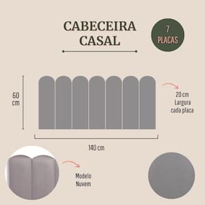 Tamanho casal (7 placas): 140cm (comprimento total) x 60cm (altura) x 3 cm (profundidade).