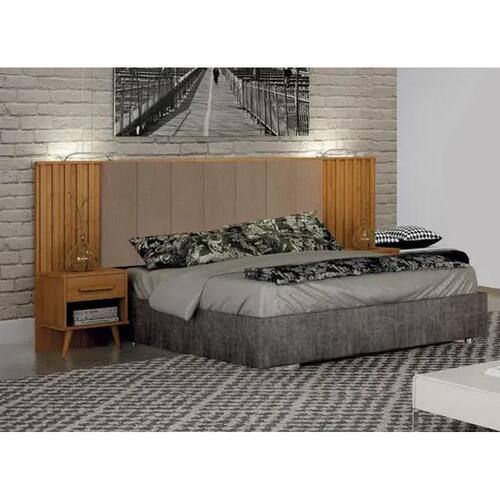 Cabeceira Casal Milano Ripado Estofado Com 2 Mesa de Cabeceira Leifer