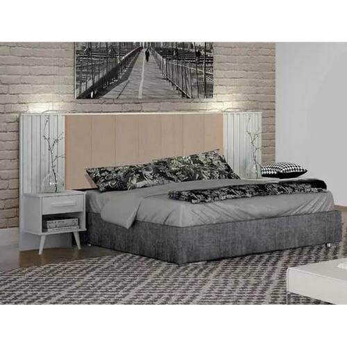 Cabeceira Casal Milano Ripado Estofado Com 2 Mesa de Cabeceira Leifer