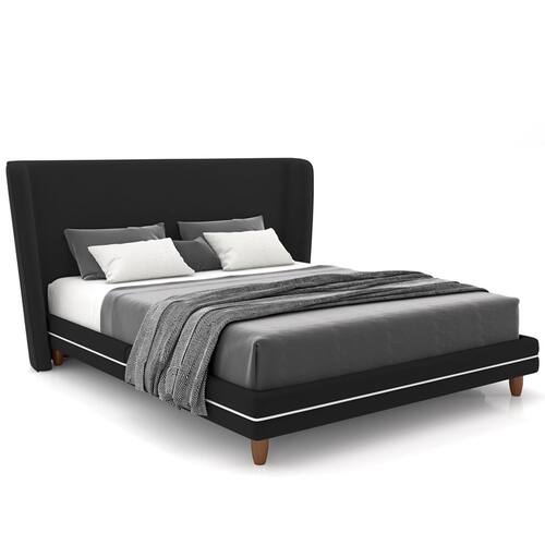 Revestimento em tecido Veludo de alta qualidade na cor Preto, com detalhe na cor Bouclê Cru.