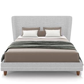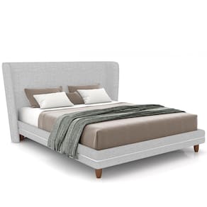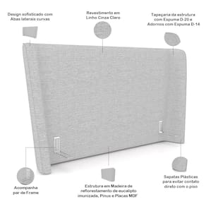 Revestimento em tecido Linho de alta qualidade na cor Cinza Claro, com detalhe na cor Bouclê Cru.