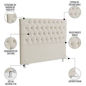 A Cabeceira Casal é uma ótima opção para quem busca conforto, beleza e qualidade. Ela é feita com madeira de Eucalipto, e possui um acabamento em espuma poliuretano e tecido bouclê de ótima qualidade e com detalhe em capitonê que vai deixar seu Quarto ainda mais elegante, acompanha dois pés em PVC, ideais para evitar o contato direto com o chão. A Cabeceira Painel tem um design moderno e sofisticado, com sistema de fixação prático e seguro, que permite que você a instale sem dificuldade fixando o frame na cabeceira e em seguida a base do box no frame. Ah! E ainda acompanha duas Mesas de Cabeceira estilo industrial, que além de ser prática para apoiar seu celular, abajur ou carteira ela conta com 1 nicho e 1 prateleira para objetos decorativos, livros e o que mais precisar. Com esse kit você vai ter um quarto mais aconchegante, organizado e charmoso.