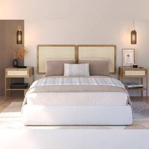 Com a Cabeceira Casal Queen 160cm e 2 Mesas Laterais 1 Gaveta Indy, da Lyam Decor, o seu quarto de casal vai se transformar em um verdadeiro refúgio de amor, aconchego e estilo.