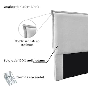 Modelo: Cabeceira Luna Tecido LinhoCores disponíveis: linho Rústico natural, linho Rústico areia e linho Rústico grígioEstrutura: Madeira industrializada de alta resistênciaEspuma: D23 SeladaEstofamento: 100% poliuretano