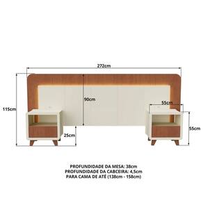 A Cabeceira Mabel Casal/Queen leva para o seu quarto o mesmo padrão de qualidade dos móveis planejados, unindo beleza, resistência e funcionalidade. Produzida em 100% MDF com revestimento BP e acabamento em fita de borda PVC 0,045cm, garante durabilidade e sofisticação, com acabamento superior típico de móveis planejados de alto padrão. O conjunto acompanha 2 mesas de cabeceira com gaveta e nicho, ideais para organizar livros, objetos e apoiar luminárias. Para o dia a dia, conta com duas tomadas embutidas (uma de cada lado), perfeitas para carregar eletrônicos. O diferencial está na fita de LED 3000K, que cria iluminação indireta aconchegante, deixando o quarto moderno e confortável. Indicada para camas de até 158 cm (Casal ou Queen), combina com móveis amadeirados, brancos ou cinza. Produto Montado: Sim Acabamento da Mesa de Cabeceira: Melamínico Altura dos Pés: 11,5 cm Altura Máxima dos Pés: 11.5000 Ambiente Principal: Quarto Cabeceira Estofada: Não codigo_ean: 7901008600984 Complexidade da Montagem: Média: pode ser montado por mais de uma pessoa e/ou necessite de maior conhecimento para montagem Cor: Off White / Castanho Cor do Produto: Off White / Castanho Cor Flex: Não Escala de Brilho: Fosco Escala de Brilho da Mesa de Cabeceira: Fosco Extensível: Não Fixação Box: Não Fixação na Parede: Sim Informações Complementares: Limpar somente com um pano levemente umedecido. Indicado para ambientes internos. Itens Inclusos: 1 Cabeceira, 2 Mesas de Cabeceira, Kit Ferragens e Manual de Montagem Largura do Colchão Indicado: 138cm/158cm Linha ou Coleção: Mabel Manual de Montagem e Instalação: https://product-hub-prd.madeiramadeira.com.br/763657824/documents/cd1cc50a-6109-42e3-83aa-6d41b27043483143945657817555226278.pdf Marca: FD Material da Mesa de Cabeceira: MDF Material dos Pés: MDF Material Principal: MDF Montagem Flex: Não Necessita Montagem: Sim Origem do Produto: Nacional Peso: 67 kg Possui Baú: Não Possui Espelho: Não Possui Mesa de Cabeceira: 02 Possui Pés: 08 Possui Rodízio: Não Possui Possui Vidro: Não Recomendações de Uso, Manutenção e Limpeza: Limpar somente com um pano levemente umedecido. Indicado para ambientes internos Sistema de Montagem: Parafusos, cavilhas e minifix Tipo de Colchão: Casal/Queen