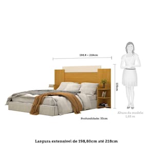 As cabeceiras são grandes aliadas na hora de decorar pois além de serem compactas e versáteis, oferecem um conforto a mais no seu momento de descanso. Normalmente as cabeceiras trazem espaços para acomodar objetos, que você pode abusar da criativadade para enriquecer a decoração e organização. Este é o caso da belíssima Cabeceira Isabela, que traz uma proposta clean e moderna em seu estilo, com 3 prateleiras de cada lado, possibilitando explorar as mais diversas formas de decoração. Além claro, de ser desenvolvida em 100% MDF, material de qualidade que oferece maior durabilidade e resistência. Aproveite e adquira já a sua. Ambiente Principal: Quarto Cabeceira Estofada: Não Complexidade da Montagem: Média: pode ser montado por mais de uma pessoa e/ou necessite de maior conhecimento para montagem Cor: Marrom/Off White Cor do Produto: Marrom/Off White Cor Flex: Todo Marrom ou Marrom com Off White Escala de Brilho: Semi-Brilho Extensível: Sim Fixação Box: Não Fixação na Parede: Não Informações Complementares: Possui 3 prateleiras de cada lado, cada uma suportando máximo de 1kg. Peso máximo suportado de 35kg devem ser distribuídos de forma adequada e equilibrada. Base e colchão box não acompanham o produto. Itens Inclusos: 1 Cabeceira, Kit Ferragens e Manual de Montagem Largura do Colchão Indicado: 138cm ou 158cm Largura Máxima: 218 cm Largura Mínima: 198,8 cm Linha ou Coleção: Isabela Manual de Montagem e Instalação: http://cdn2.madeiramadeira.com.br/tecnico/acp-moveis/46757-cabeceira-isabela.pdf Material Principal: MDF Necessita Montagem: Sim Origem do Produto: Nacional Peso: 29 kg Possui Espelho: Não Possui Possui Mesa de Cabeceira: Não Possui Pés: Não Possui Vidro: Não Recomendações de Uso, Manutenção e Limpeza: Para limpar não use nenhum tipo de produto, tais como sabão, esponja de aço, álcool e lustra-móveis. Use somente uma flanela seca. Não molhe nem exponha o móvel à umidade ou a luz solar diretamente ou outra forma de calor. Não encoste o móvel na parede. Não o arreste. Se precisar mudar o móvel de lugar, esvazie por completo o móvel, não o arraste, com ajuda de outras pessoas suspenda o móvel de forma segura e o posicione no lugar desejado. Sistema de Montagem: Parafusos, Minifix e Cavilhas. Tipo de Colchão: Casal