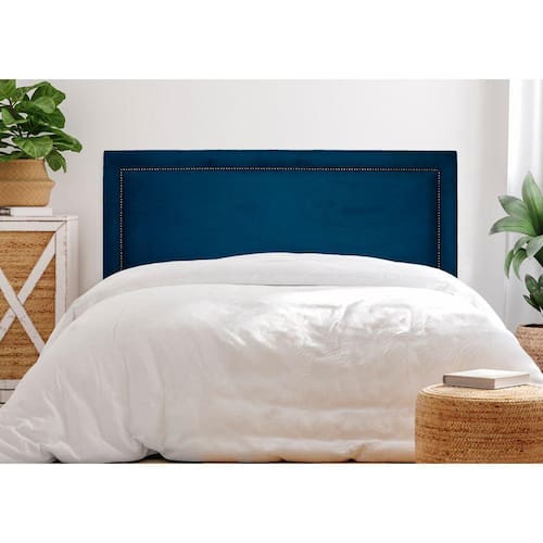 Cabeceira Casal Reta Luxo 140x60 Suede Azul - Tachas Fumê - Azul Marinho