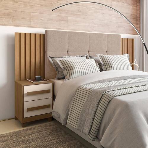 A cabeceira tem um design incrível para decorar o seu quarto.