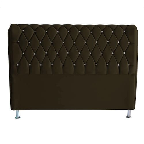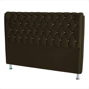 Cabeceira De Cama Box Jully Queen 160 Cm Botão Strass Suede Marrom Eli Móveis