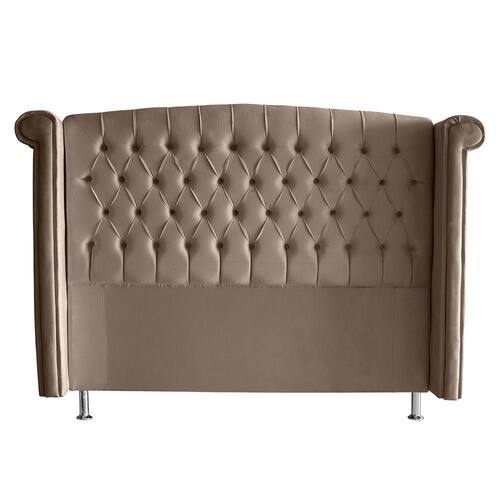 Essa cabeceira casal estofada é um luxo só, isso porque o seu design curvo somado aos botões revestidos cria um ambiente clássico e charmoso.