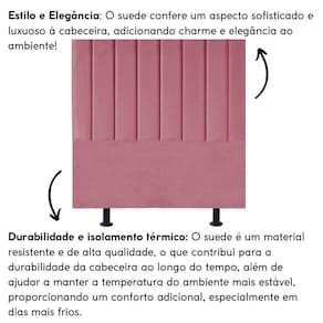 Fabricada com materiais de alta qualidade, como madeira eucalipto e revestimento em suede, esta cabeceira é durável e resistente, garantindo não apenas estilo, mas também funcionalidade para o seu ambiente.
