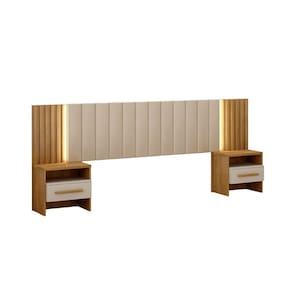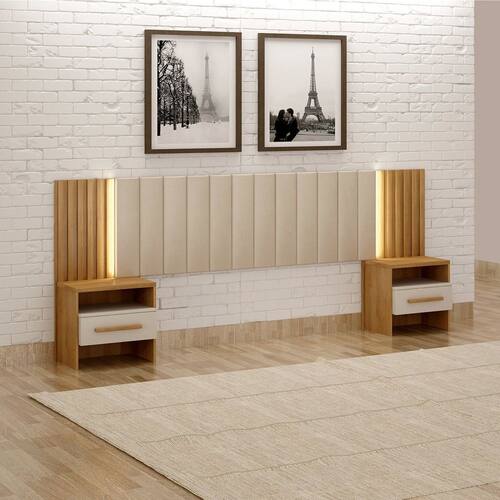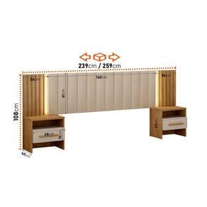 Essa linda cabeceira Los Angelis possui regulagem para colchão de casal e queen, além de 02 mesas de cabeceiras com gavetas com corrediças telescópicas, e todo o seu charme com painel ripado, encosto aveludado e conta também com iluminação de LED para trazer o requinte ainda mais ao seu móvel. Produto Montado: Sim Acabamento da Mesa de Cabeceira: Verniz Ambiente Principal: Quarto Cabeceira Estofada: Sim codigo_ean: 7900288226112 Complexidade da Montagem: Média: pode ser montado por mais de uma pessoa e/ou necessite de maior conhecimento para montagem Cor: Cumaru / Cinza Cor do Produto: Cumaru / Cinza Densidade da Espuma: D-20 Escala de Brilho: Fosco Escala de Brilho da Mesa de Cabeceira: Fosco Extensível: Sim Fixação Box: Não Fixação na Parede: Não Itens Inclusos: 1 Cabeceira, Kit Ferragens e Manual de Montagem Largura do Colchão Indicado: 138cm/158cm Largura Máxima: 259 cm Largura Mínima: 239 cm Linha ou Coleção: Los Angelis Manual de Montagem e Instalação: https://product-hub-prd.madeiramadeira.com.br/441460059/documents/926a3c6d-5bf3-4852-9140-c89209846aa43122392413217545894954954.pdf Marca: Novo Horizonte Material da Mesa de Cabeceira: MDF/MDP Material Principal: MDF/MDP Necessita Montagem: Sim Origem do Produto: Nacional Peso: 57 kg Possui Baú: Não Possui Espelho: Não Possui Mesa de Cabeceira: 02 Possui Pés: Não Possui Vidro: Não Recomendações de Uso, Manutenção e Limpeza: pano úmido, sem uso adicional de produto abrasivos Sistema de Montagem: Parafusos, ferragens e entre outros. Tipo de Colchão: Casal/Queen