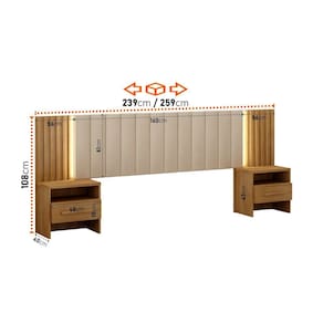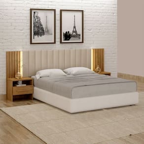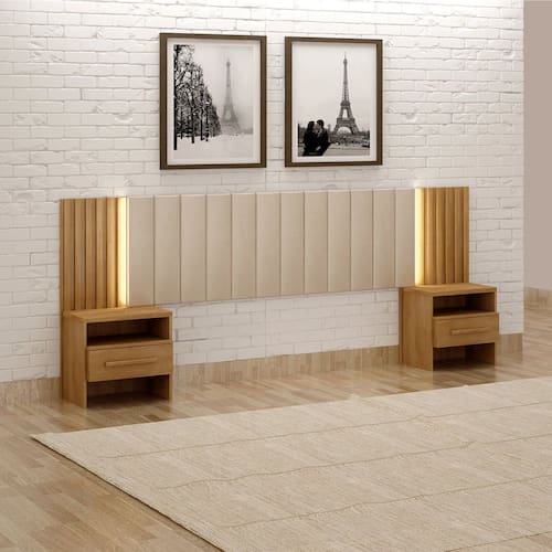 Essa linda cabeceira Los Angelis possui regulagem para colchão de casal e queen, além de 02 mesas de cabeceiras com gavetas com corrediças telescópicas, e todo o seu charme com painel ripado, encosto aveludado e conta também com iluminação de LED para trazer o requinte ainda mais ao seu móvel. Produto Montado: Sim Acabamento da Mesa de Cabeceira: Verniz Ambiente Principal: Quarto Cabeceira Estofada: Sim codigo_ean: 7900288226105 Complexidade da Montagem: Média: pode ser montado por mais de uma pessoa e/ou necessite de maior conhecimento para montagem Cor: Cumaru Cor do Produto: Cumaru Densidade da Espuma: D-20 Escala de Brilho: Fosco Escala de Brilho da Mesa de Cabeceira: Fosco Extensível: Sim Fixação Box: Não Fixação na Parede: Não Itens Inclusos: 1 Cabeceira, Kit Ferragens e Manual de Montagem Largura do Colchão Indicado: 138cm/158cm Largura Máxima: 259 cm Largura Mínima: 239 cm Linha ou Coleção: Los Angelis Manual de Montagem e Instalação: https://product-hub-prd.madeiramadeira.com.br/270772001/documents/f07eb5ba-44e4-4d19-8b81-921ae777161e3122392413217545894954954.pdf Marca: Novo Horizonte Material da Mesa de Cabeceira: MDF/MDP Material Principal: MDF/MDP Necessita Montagem: Sim Origem do Produto: Nacional Peso: 57 kg Possui Baú: Não Possui Espelho: Não Possui Mesa de Cabeceira: 02 Possui Pés: Não Possui Vidro: Não Recomendações de Uso, Manutenção e Limpeza: pano úmido, sem uso adicional de produto abrasivos Sistema de Montagem: Parafusos, ferragens e entre outros. Tipo de Colchão: Casal/Queen