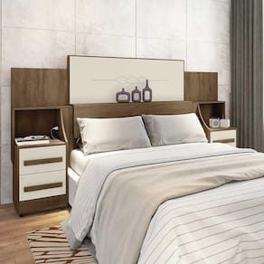 A Cabeceira de Casal Síria - RV Móveis é o produto mais indicado para quem deseja beleza e conforto enquanto aproveita seu momento de descanso. Possui dois criados com gavetas com corrediças telescópicas e puxadores em MDF, além de tomadas embutidas. Conta também com design moderno, sem deixar de lado requinte e sofisticação.