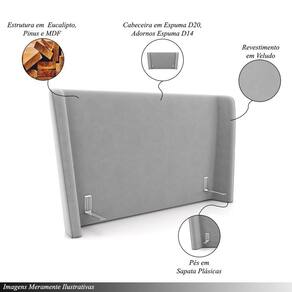 Cabeceira Design Para Cama Queen Torres Pés Em Madeira Veludo Cinza G91 - Gran Belo