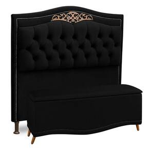 Cabeceira E Calçadeira Baú Box Casal Belize 140cm Preto