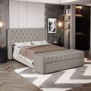 Renove seu quarto com o Conjunto de Cabeceira e Calçadeira Baú Para Cama Box Atena! Desfrute de noites inesquecíveis com a Cabeceira Estofada, que combina conforto e elegância com detalhes em Capitonê e espumas de alta qualidade D-20 e D-23. Sua instalação é fácil e rápida, graças ao encaixe perfeito na Cama Box e ao Frame incluso. Além disso, a estrutura de madeira de reflorestamento reforça nosso compromisso com a sustentabilidade. Acompanhando, a Calçadeira Baú Atena oferece praticidade e organização. Com estrutura robusta e estofamento em espuma, proporciona conforto e durabilidade. Seu design versátil e acabamento em Capitonê adicionam sofisticação ao ambiente. Suportando até 100 kg, é perfeita para guardar sapatos ou complementar a decoração do seu quarto. Transforme seu espaço com este conjunto perfeito! Adquira já e desfrute de praticidade, conforto e estilo.