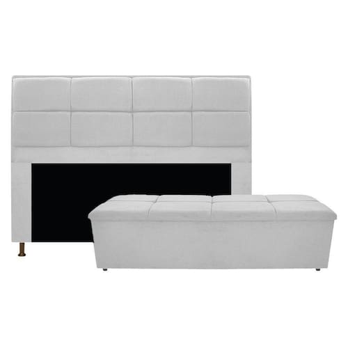 Cabeceira e Calçadeira Munique 140 Cm Casal Suede Branco