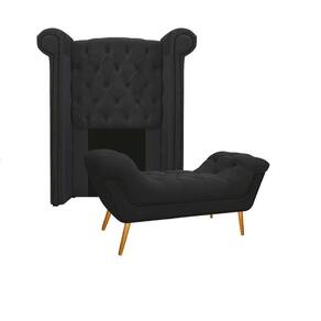 Kit Cabeceira E Calçadeira Veneza 100 Cm Solteiro Suede Preto - Amarena Móveis