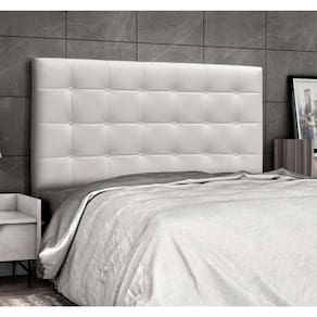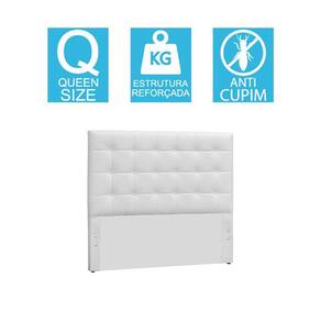 Linda Cabeceira E Box Clean Queen 1,60m Em Corino Branco. Recomendado para cama queen padrão 1.58m x 1.98m. Ideal para quem busca modernidade para o quarto.