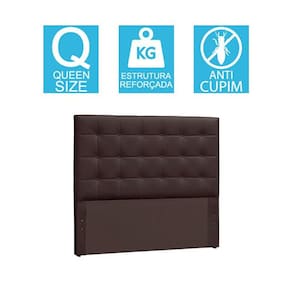 Linda Cabeceira E Box Clean Queen 1,60m Em Corino Marrom. Recomendado para cama casal padrão 1.58m x 1.98m. Ideal para quem busca modernidade para o quarto.