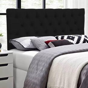 Linda Cabeceira E Box Paris Casal 1,40m Em Suede Preto. Recomendado para cama casal padrão 1.38m x 1.88m. Ideal para quem busca modernidade para o quarto.