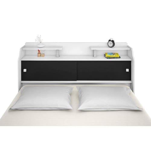 As cabeceiras Elisa Quenn, Casal e Solteiro são produtos com cores flex, onde possui duas opções de montagem. Tem um ótimo espaço interno com prateleira. Ideal para quem gosta de um visual moderno e que proporcione conforto.Características:Cabeceira Casal (para colchões box de 1,38 m)Cor: branco/pretoAltura: 1,14 m Largura: 1,43 m Profundidade 0,23 m Flex CollorMaterial: Mdf e MdpPrateleira para objetos e decoraçãoDuas portas deslizantes, com prateleira no compartimento internoGarantia contra defeitos de fabricaçãoMontagem não inclusa. Contratar um montador com experiência.- As imagens são ilustrativas, não acompanham objetos de decoração e eletrônicos; - A montagem será de responsabilidade do comprador; - Confira as dimensões do produto e certifique-se de que passará normalmente por elevadores, portas, escadas ou corredores de sua residência. Não nos responsabilizamos, no ato da entrega por transporte por guincho em apartamentos.