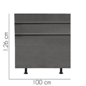 - Largura: 100 cm; - Altura: 126 cm; - Profundidade: 11 cm; - Produto estofado; - Produzido em Madeira de Pinus e Eucalipto; - Pés em pvc;