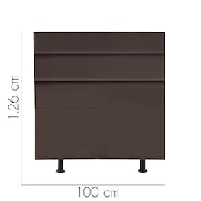 - Largura: 100 cm; - Altura: 126 cm; - Profundidade: 11 cm; - Produto estofado; - Produzido em Madeira de Pinus e Eucalipto; - Pés em pvc;
